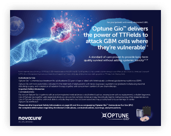 In this section, you’ll find a variety of resources to help you better understand Optune Gio, share this novel treatment with your patients who have newly diagnosed or recurrent glioblastoma (GBM), and start prescribing Optune Gio.