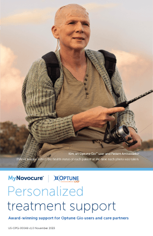Provides a high-level overview of Optune Gio, including clinical efficacy, how to obtain and properly use Optune Gio, and the MyNovocure Support Program.